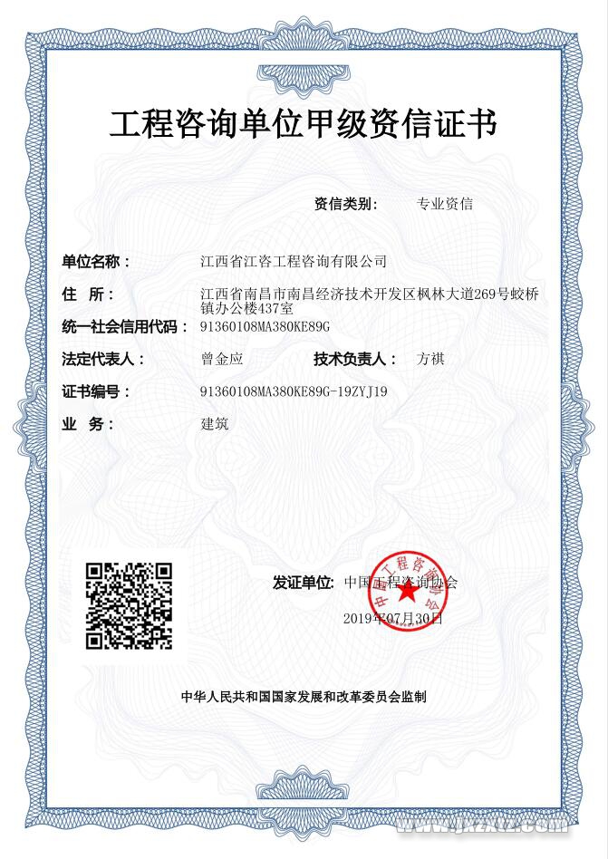 工程咨詢甲級資信證書(建筑 專業咨詢)